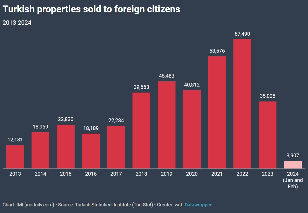 2013-2024年土耳其出售給外國公民的房產(chǎn)