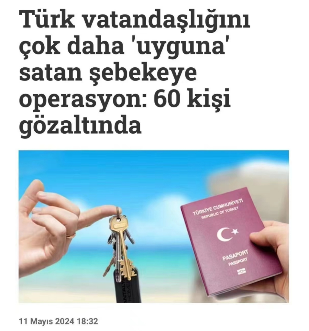 近日,土耳其針對一個以低廉價格出售土耳其公民身份的團(tuán)伙開展了一項行動,逮捕了60多名違法獲取護(hù)照人員,包括涉案開發(fā)商、評估公司、律師等,都已經(jīng)被調(diào)查逮捕。
